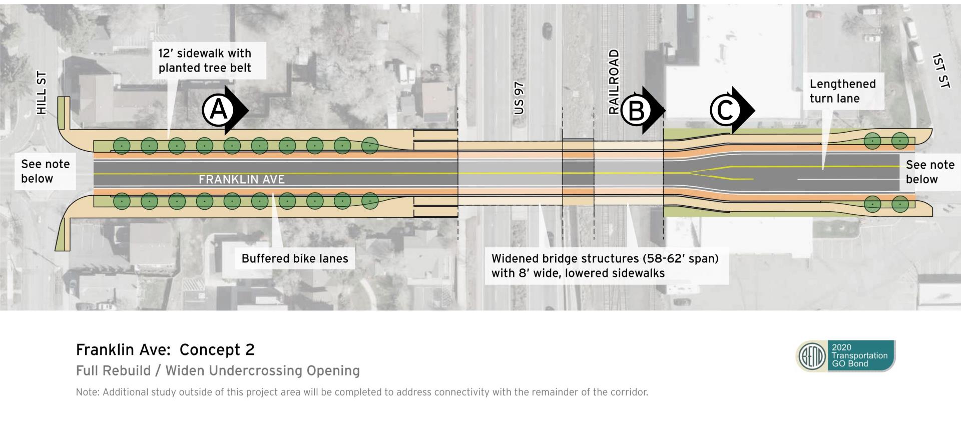 - Long construction process with significant temporary traffic impacts during construction on both Franklin Avenue and U.S. 97.