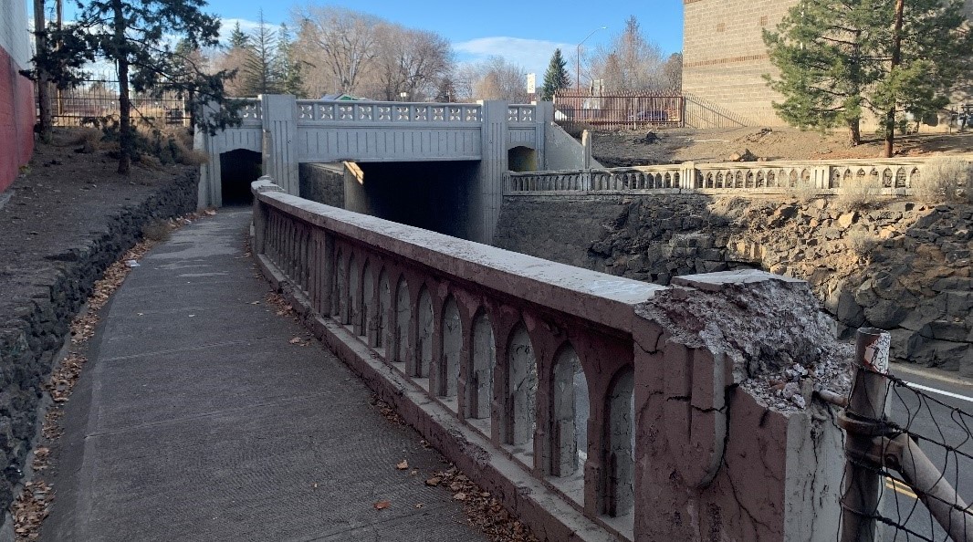The existing undercrossing on Franklin Avenue is very narrow and dark, and it’s hard to see from one end to the other. It is currently used by more people walking and biking than the Greenwood Avenue undercrossing, including Bend Senior High School students.