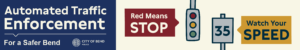 It means using cameras to detect drivers who break traffic laws. Red light cameras take pictures and video of vehicles that don’t stop at red lights. Speed cameras take pictures of vehicles going too fast. If someone driving a vehicle breaks the rules, the registered owner of the vehicle gets a ticket in the mail. Automated traffic enforcement is designed to improve the community’s safety by cutting down on traffic violations and crashes.