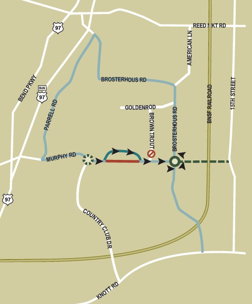 • Brown Trout Place will be closed at Murphy Road when westbound traffic on Murphy Road is detoured.