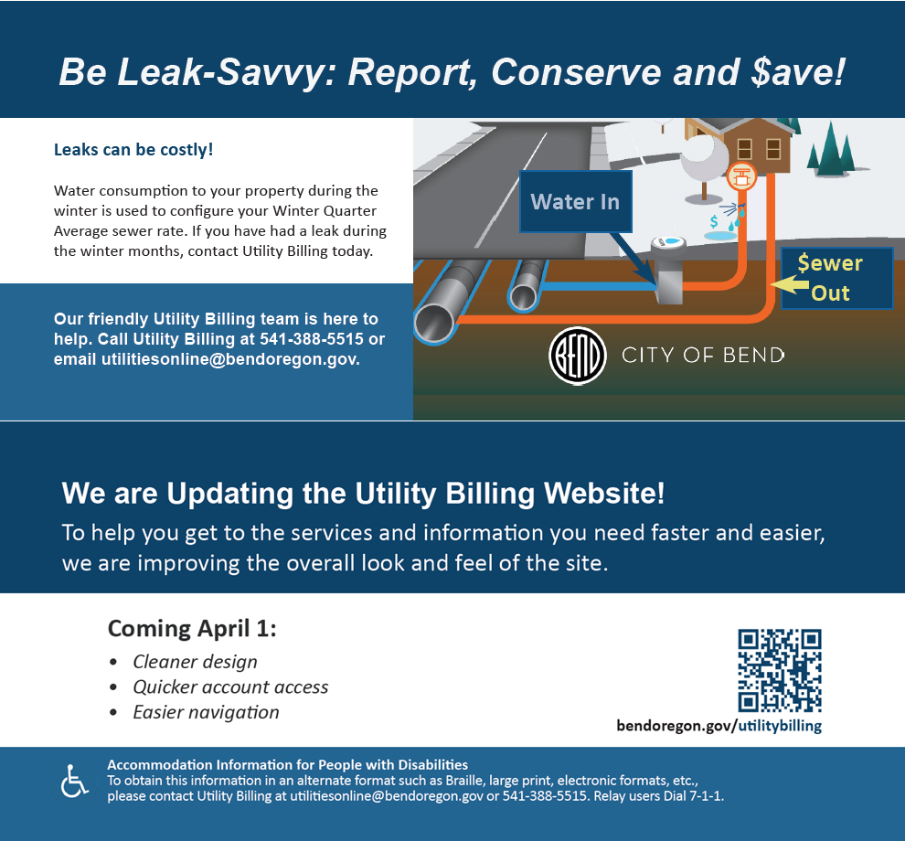 | March 2024 | Be Leak-Savvy: Report, Conserve and $ave! / We are Updating the Utility Billing Website! |